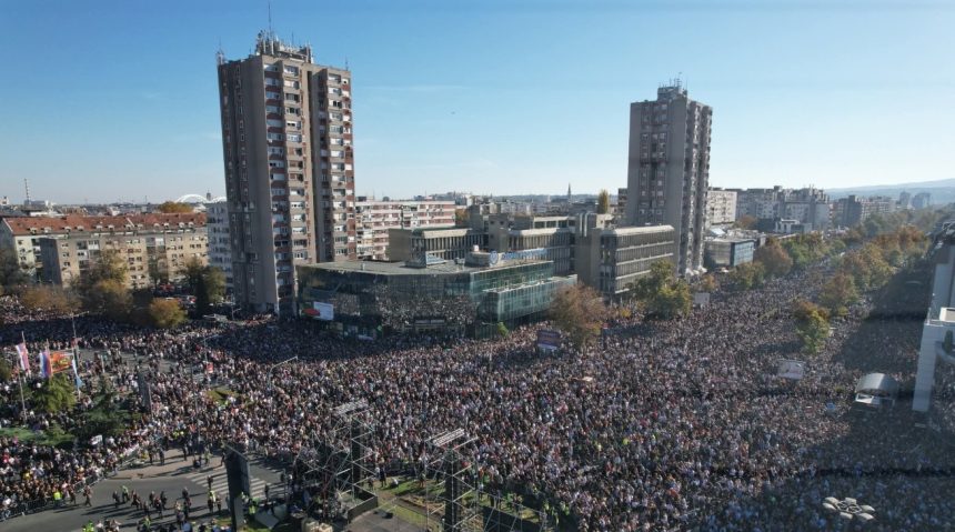 „За време на пикот на ненајавениот собир, на подрачјето на градот Нови Сад, од 11:52 до 12:08 часот, присутни беа околу 39.000 граѓани, кои пристигнаа во Нови Сад од цела Србија“, соопшти МВР на Србија.