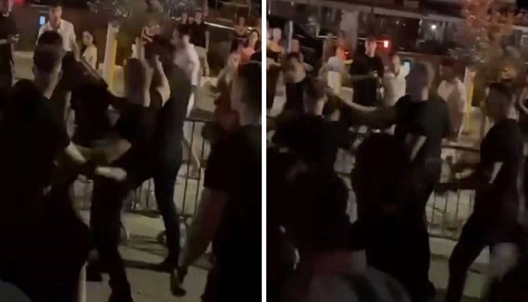 На социјалните мрежи се појавија снимки на кои се гледаат голем број мажи во црно, најверојатно обезбедување во локалот, како брутално тепа млад човек.
