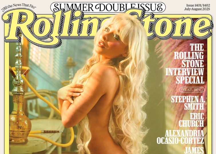 Музичката ѕвезда Сабрина Карпентер, 26, се појави на насловната страница на магазинот „Ролинг стоун“, облечена само во чорапи до бутовите и долги платинести екстензии за коса што ги покриваа нејзините голи гради и задник. Пејачката позираше клекната пред наргиле, облечена во бели чипкани чорапи, додека нејзиното тело беше покриено со бујна коса. Во кадарот има и бела салонка.