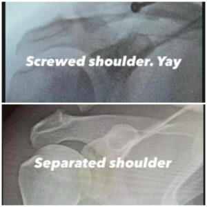 – Одвоено рамо – напиша тој, а потоа следуваше втора фотографија после операцијата покрај која напиша: „Зашрафено рамо. Ура“.