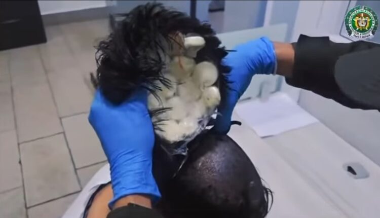 На видеото од апсењето, кое стана вирално, се гледа како полицајците му вадат перика од главата на мажот, откривајќи пакетчиња кокаин прикачени на внатрешната страна на периката.