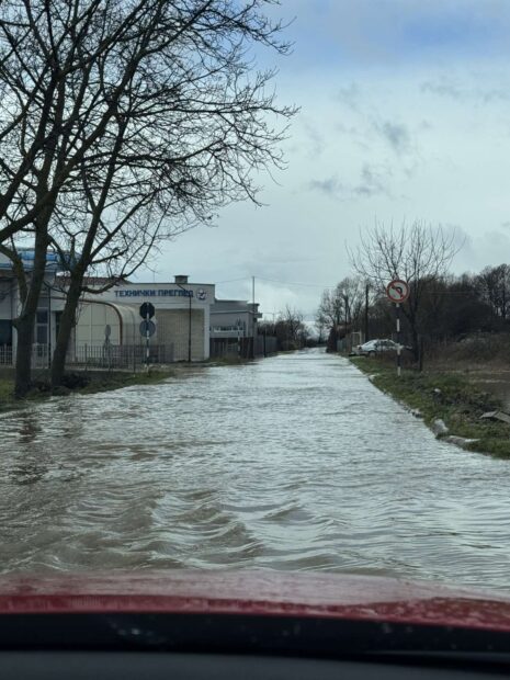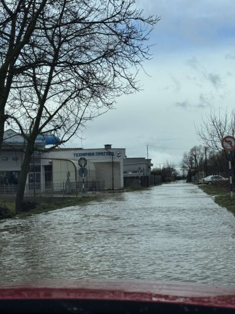 Пристапниот пат од улица Туристичка кон Специјалната болница за ортопедија и трауматологија “Свети Еразмо” исто така е целосно под вода, што ги отежнува пристапот до здравствената установа.