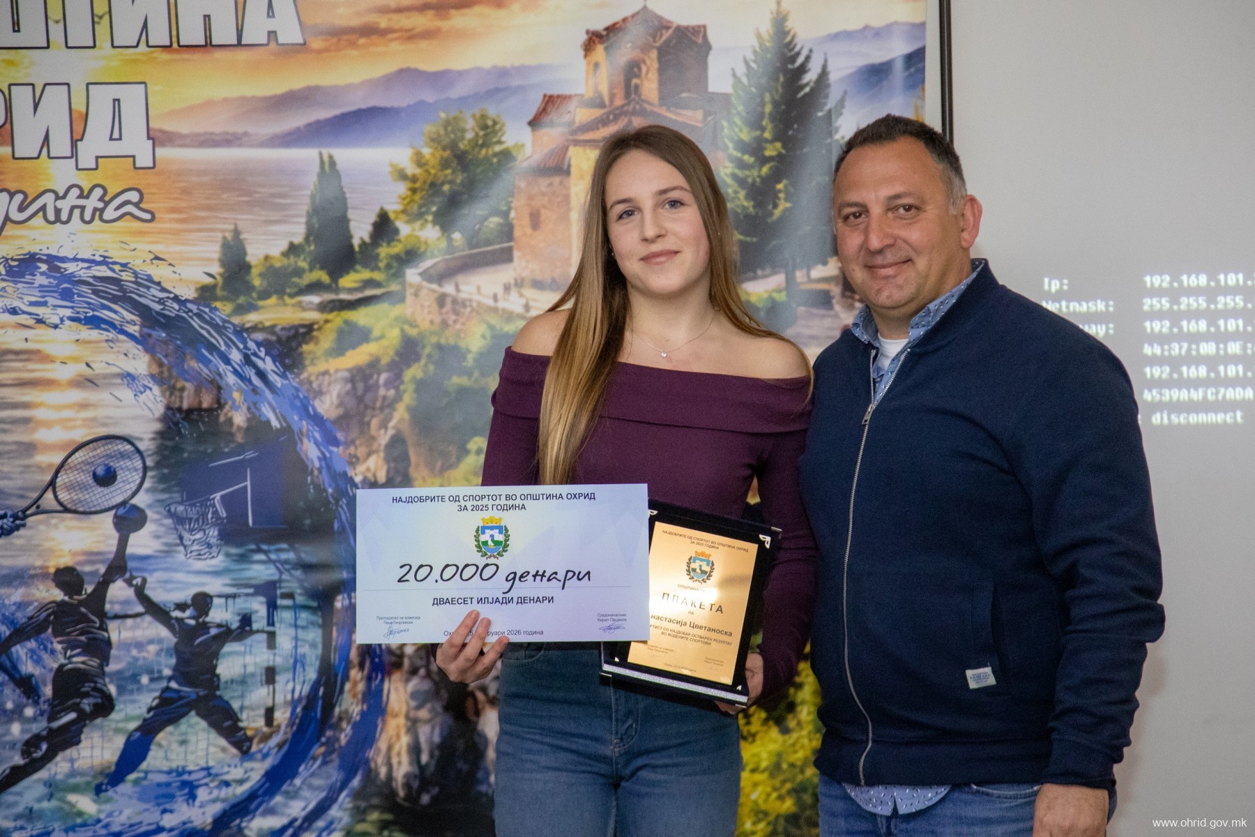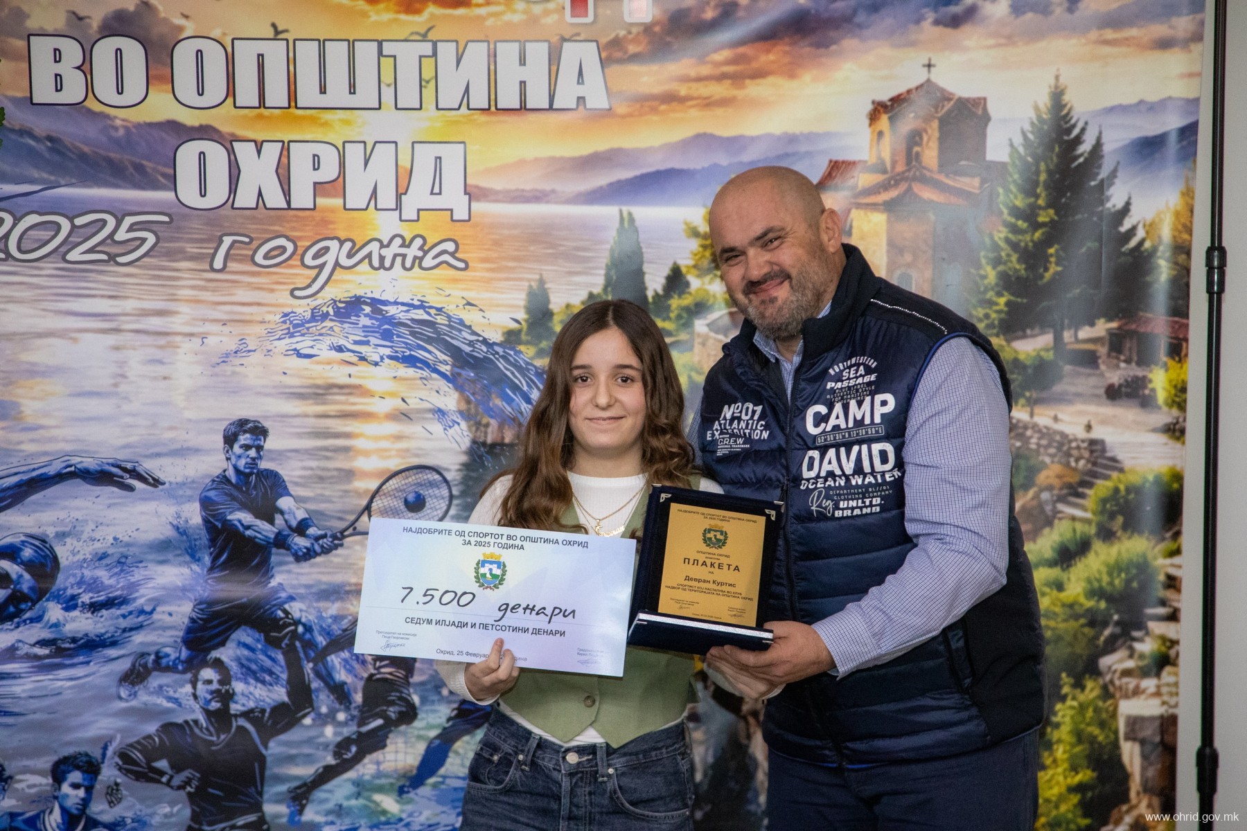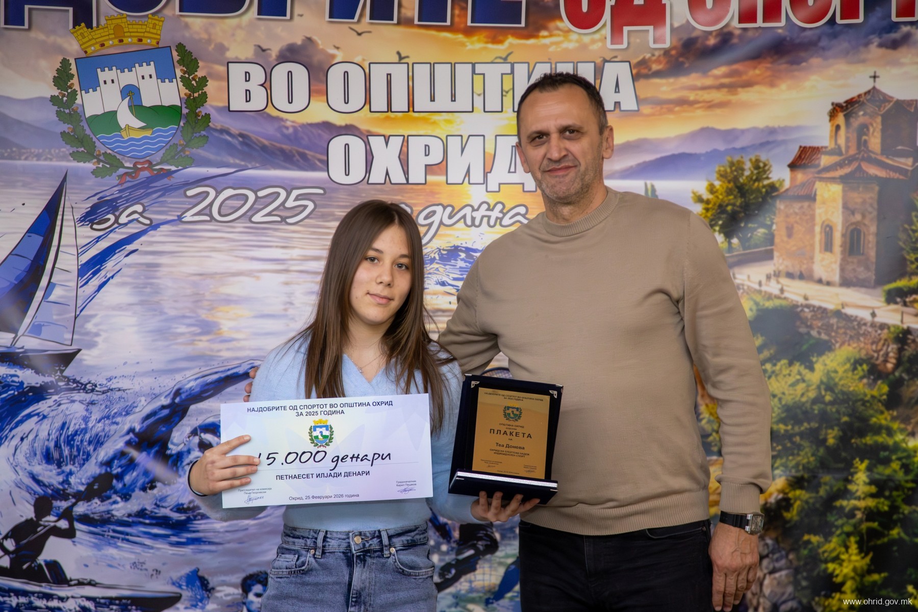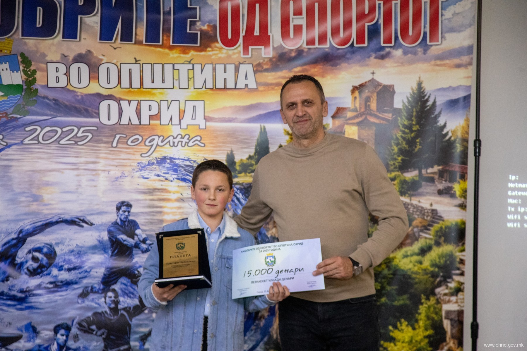 Во групата на најдобрите се вброија и: охридските спортски надежи во Индивидуален спорт, Христијан Шибакоски (Таеквон-до) и Теа Донева (Борење), спортските надежи во колективен спорт, Давор Танески (фудбал) и Илија Трајчески (ракомет), Тренер на годината е Саша Попоски (Таеквон-до).