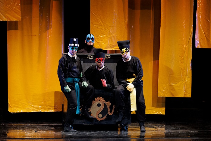 Во насловната улога на принцезата Турандот ќе настапи светски познатата сопранистка Вероника Џиоева од Русија, во улогата на Калаф ќе настапи кинескиот тенор, Ѕ-Жао Гуо, улогата на Лиу ќе ја толкува, Биљана Јосифов, улогата на Тимур, Владимир Саздовски, во останатите улоги ќе настапат: Драган Ампов, Јане Дунимаглоски, Дејан Стоев, Диме Петров, Марјан Николовски заедно со хорот, оркестарот и балетскиот ансмбл на Националната опера и балет.
