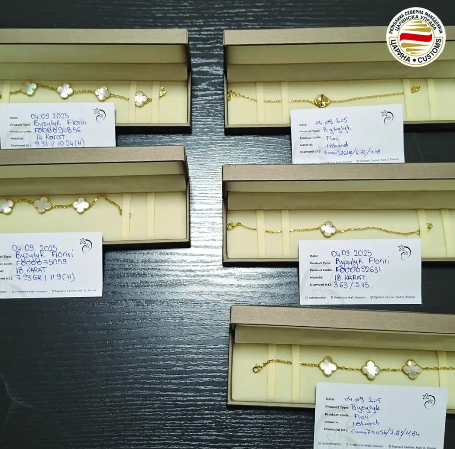 Накитот бил скриен во куфер меѓу лични предмети и бил запакуван во оригинални кутии за накит. Против сторителот, македонски државјанин, е поднесена кривична пријава за криумчарење.