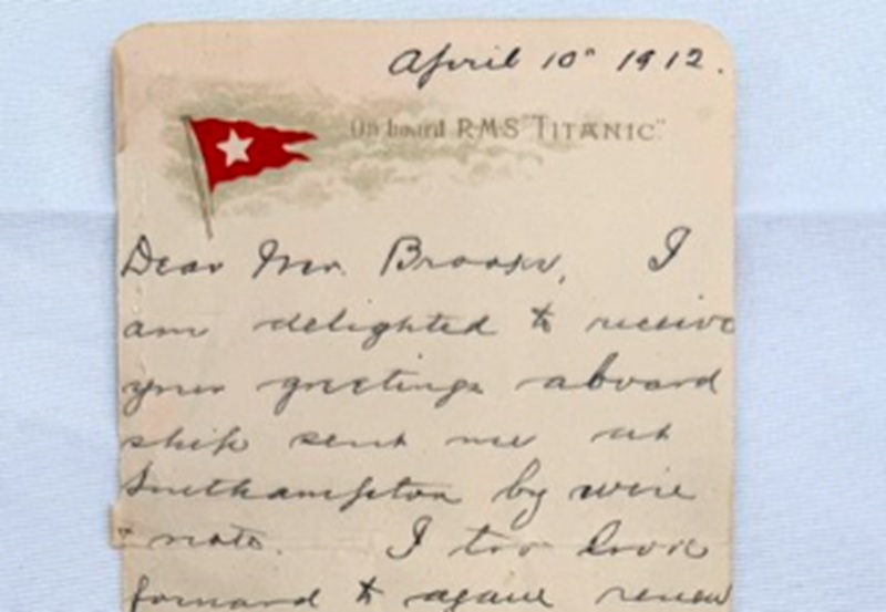 Писмото е напишано од патникот Арчибалд Грејси на 10 април 1912 година е продадено на приватен колекционер во САД, информира аукциската куќа „Хенри Олдриџ и син“ од Вилтшир, Англија.