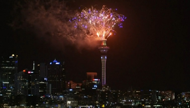 Иконската Скај Тауер во Окленд, во Нов Зеланд, стана центар на новогодишните прослави додека илјадници луѓе се собраа да го видат прекрасниот огномет што го осветлува небото. Со ова, Окленд стана првиот голем град во светот кој ја пречека 2025 година.