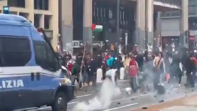 Полицијата за разбивање демонстрации испука солзавец и се судри со демонстрантите недалеку од главната железничка станица во Милано, изјави очевидец, а италијанските медиуми објавија дека демонстрантите се обиделе да го блокираат сообраќајот на автопат во близина на Болоња.