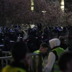 Пред влезот на зградата на РТС синоќа беше региостриран и судир кога кордон полиција со опрема за разбивање демонстрации турнала и удирала насобрани граѓани за да влезат во зградата. Потоа студентите поставија метални огради на влезната врата.