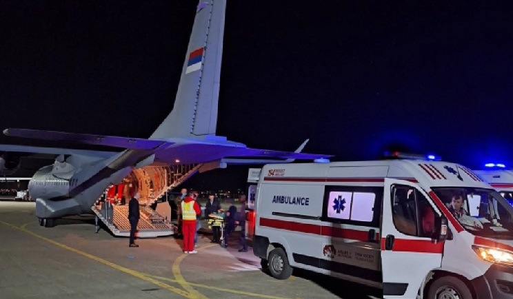 Како што јави дописникот на МИА од Белград, дванаесетте повредени лица вчера биле префлени со воен авион на српската армија. Четворица од нив се на Воено-медицинската академија во Белград, односно три девојки и едно момче, кои според првичните сознанија се во стабилна состојба и префрлени се Клиниката за пластична хирургија, а останатите се префрлени во Ургентниот центар во Белград.