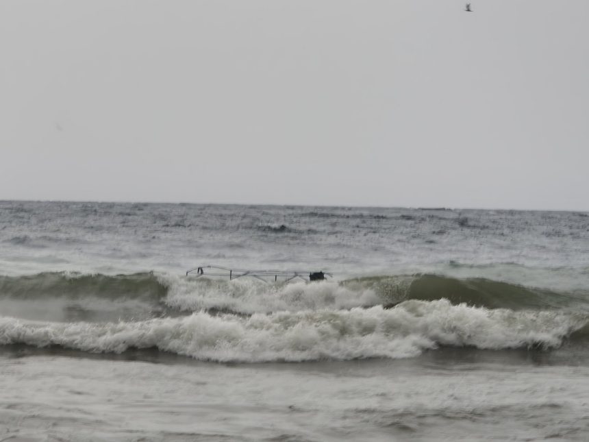 Во времето на прекинот на трката маратонците се бореа со брановите во близина на Гранит.