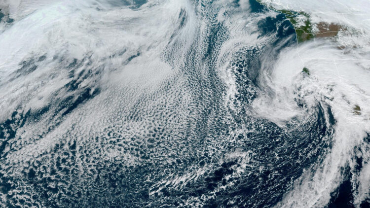 FILE PHOTO: A "Pineapple Express" weather system, or atmospheric river storm, moves towards the U.S. west coast in a composite image from the National Oceanic and Atmospheric Administration (NOAA) GOES-West weather satellite February 4, 2024. NOAA/Handout REUTERS THIS IMAGE HAS BEEN SUPPLIED BY A THIRD PARTY./File Photo