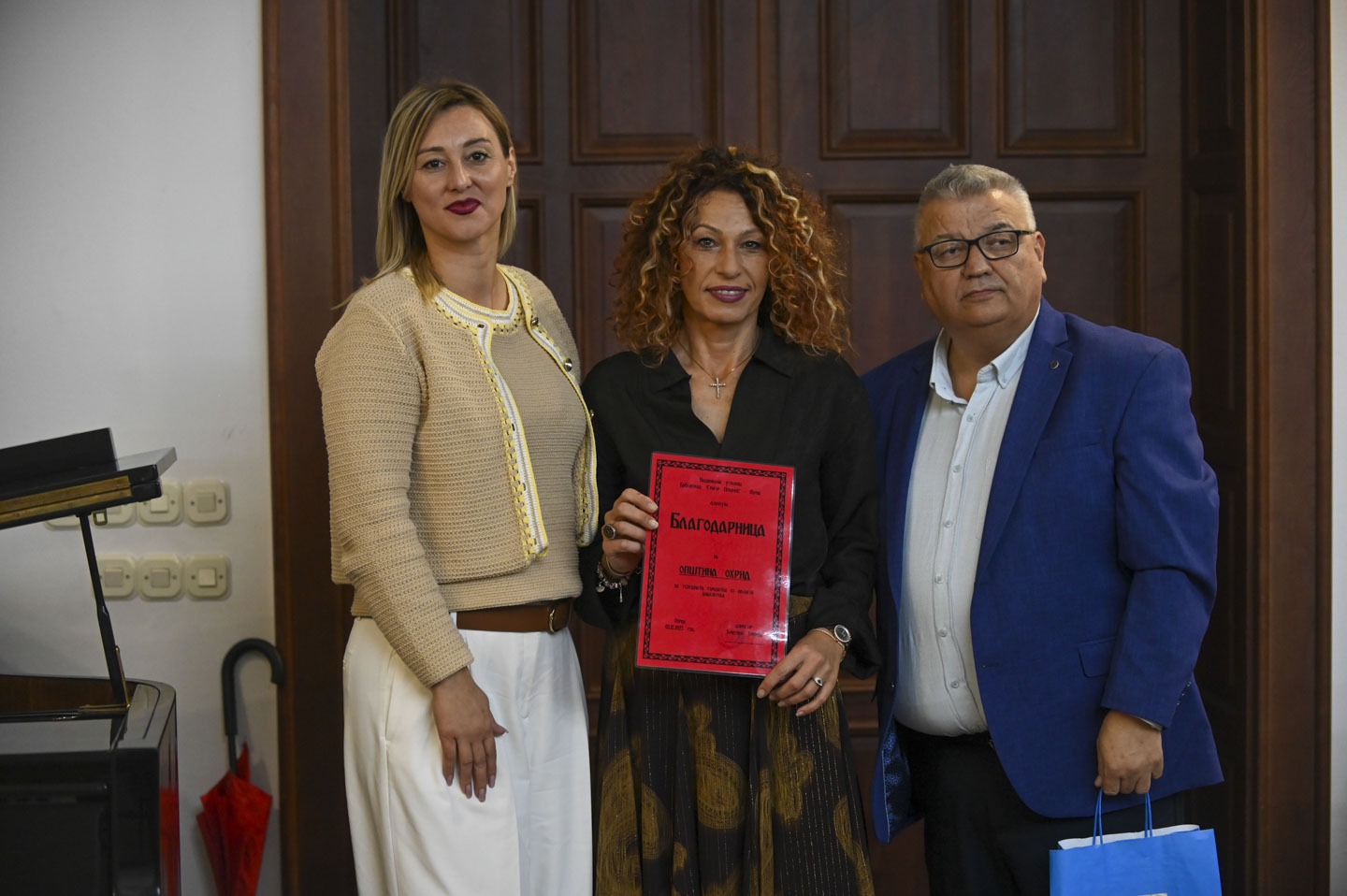 Во рамки на промоцијата на книгата од страна на Библиотеката „Григор Прличев“  беа доделени благодарници на соработниците и поддржувачите на институцијата и сите оние кои го помогнале објавувањето на ова дело.