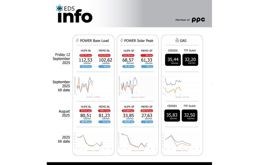 Просечната цена на струјата на HUPX берзата во Унгарија за петок 12 септември изнесува 112,53 евра за мегават час, додека на македонската берза МЕМО 102,62 евра за мегават час, анализира ЕДС Инфо Поинт.