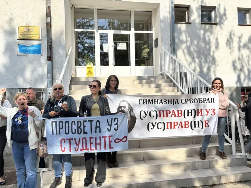Училишната администрација покрена дисциплинска постапка против три наставнички во средното училиште „Светозар Милетиќ“ во Србобран, бидејќи одлучиле да ги поддржат барањата на учениците со целосно запирање на работата. Нивното сослушување се одржа денес во училиштето, по што беше одлучено училишната администрација да донесе одлука за дисциплинска постапка подоцна.