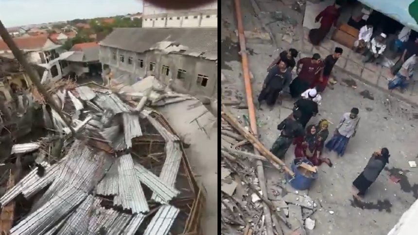Родителите очајно повикуваа по урнатините на верското училиште „Ал Кхозини“ во индонезиската провинција Источна Јава, каде зградата се срушила среде молитва. Се стравува дека 38 деца останале затрупани, јави АП.
