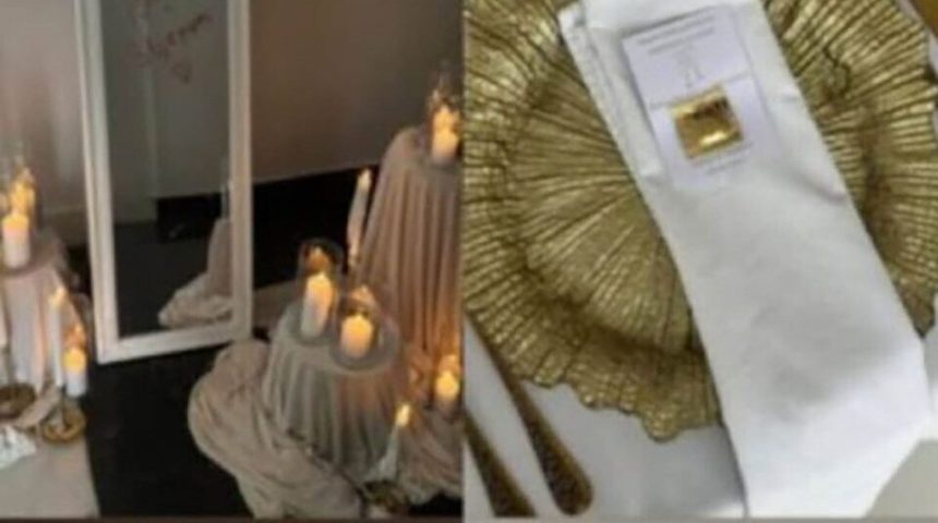 Свадбената декорација беше на ниво на луксузни прослави – златни детали на масите, луксузни букети од бели лилјани и рози, свеќи и елегантни аранжмани, како и внимателно дизајниран агол каде што гостите можеле да остават пораки за младенците. Посебно внимание привлекла пораката на секоја чинија со која гостите добиле и по еден македонски кафетин.