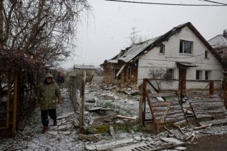 Властите соопштија дека 44-годишна жена е повредена во нападот на населбата Обухов во регионот на главниот град, каде делумно се уништени приватна куќа и градина.
