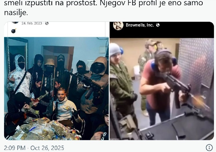 На неговиот профил на социјалните мрежи може да се видат фотографии со автоматски пушки, како и опседнатост со оружје и брзи автомобили. На една од фотографиите се гледаат позлатени автоматски пушти од марката Калашников.