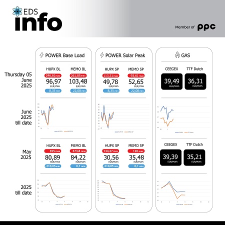 Согласно податоците за движењето на цените на берзата HUPX во Унгарија за 5 јуни просечната часовна цена на еден мегават час електрична енергија (baseload) изнесува 96,97 евра/mwh, додека на Македонската берза за електрична енергија цената е 103,48 евра/mwh.