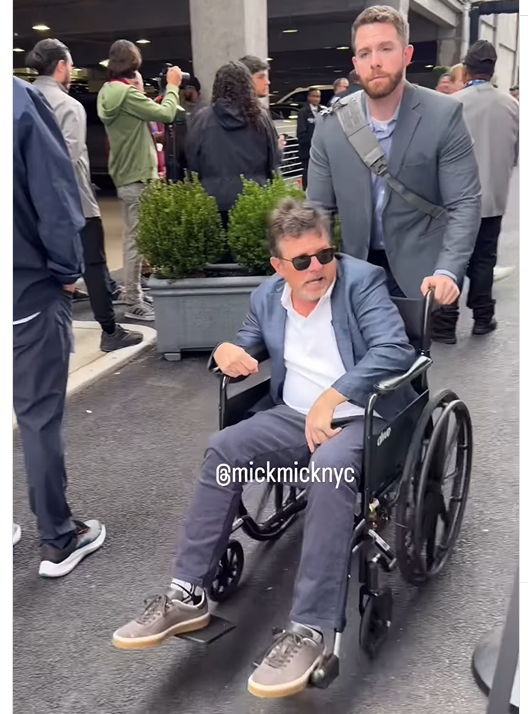 Познатиот актер Мајкл Џ. Фокс се појави на синиот тепих на Отвореното првенство на САД и накратко стана од инвалидската количка во која беше донесен за да позира за фотографите, па дури и одговори на неколку новинарски прашања.