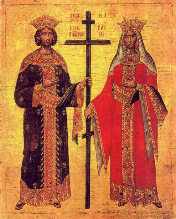 Родители на Константин му беа царот Констанциј Флор и царицата Елена. Флор имаше уште деца и други жени, но од Елена го имаше само овој Константин. Три големи борби имаше Константин кога се зацари: една против Максенциј, тиранин во Рим, друга против Скитите на Дунав и трета против Византинците. Пред борбата со Максенциј, кога Константин имаше голема грижа и се сомневаше во својот успех, му се јави сред бел ден блескав крст на небото, сиот закитен со ѕвезди, а на крстот стоеше напишано: „Со ова победувај!“ Восхитен царот нареди да му исковаат голем крст, сличен на тој што му се јави и да го носат пред војската. Со силата на Крстот тој стекна славна победа над бројно надмоќниот непријател. Максенциј се удави во реката Тибар. Веднаш потоа Константин го издаде прочуениот Едикт, во Милано, 313 година, за престанок на гонењата на христијаните. Откако ги победи Византинците, тој изгради прекрасна престолнина на Босфор, којашто оттогаш се нарече Константинопол. Но пред ова Константин западна во тешка проказна болест (лепра). Жреците и лекарите го советуваа да се бања во крв од заклани деца, но тој тоа го одби. Тогаш му се јавија Светите апостоли Петар и Павле и му рекоа да го побара епископот Силвестер, којшто ќе го излечи од страшната болест. Епископот го поучи во христијанската вера и го крсти и проказата исчезна од телото на царот. Кога во Црквата настана раздор заради смутливиот еретик Ариј, царот го свика Првиот Вселенски Собор во Никеја, во 325 година. Овде се осуди ереста, а се утврди Православието. Благочестивата мајка на царот, Света Елена, ревнуваше усрдно за верата Христова. Таа го посети Ерусалим и го пронајде Чесниот Крст Господов и на Голгота ја изгради црквата на Воскресението и уште многу други цркви по Светата Земја. Во својата осумдесетта година оваа света жена се престави кај Господ, во 327 година. А царот Константин ја надживеа мајка му за десет години и се упокои во својата шеесет и петта година, во 337 година, во градот Никомидија. Неговото тело беше погребано во црквата на Светите апостоли во Цариград.