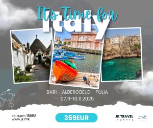 trending_flat Бизнис ЈК Травел: Бари – Алберобело – Пулија 📅 07 – 10 ноември 2025 🕒 3 ноќи / 4 дена Lorita October 16, 2025