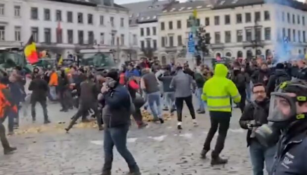 кои во рамките на денешните земјоделски протести во Брисел со трактори го блокираа плоштадот „Луксембург“ пред Европскиот парламент
