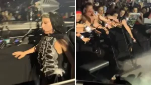Лејди Гага (39) падна додека ја изведуваше песната „Vanish Into You“ на нејзината нова концертна турнеја „The Mayhem Ball“ во Лас Вегас