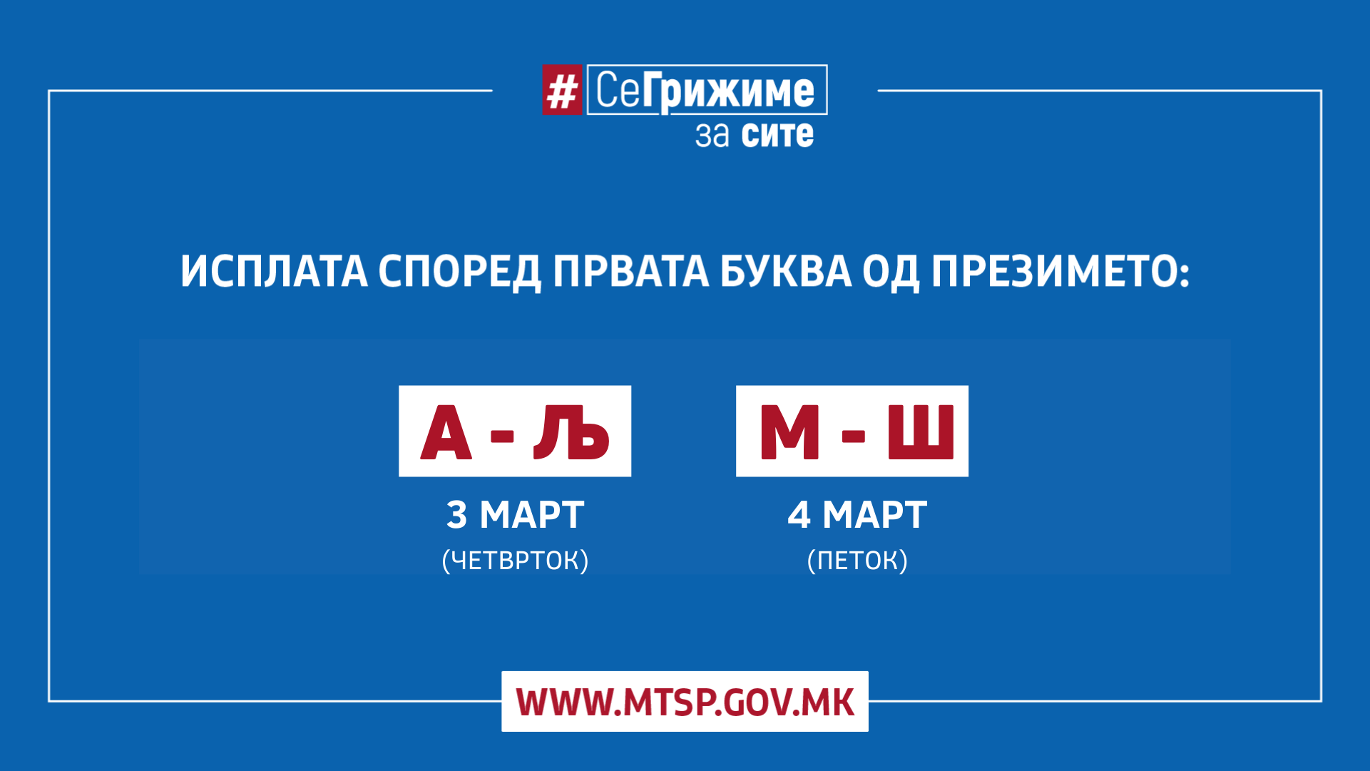 Министерството за труд и социјална политика информира дека денеска започна исплатата на правата од социјална, детска и цивилна заштита за…