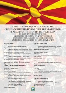 trending_flat Локално Оштина Охрид Ве поканува на свеченостите по повод одбележувањето на 2-РИ АВГУСТ – ДЕНОТ НА РЕПУБЛИКАТА – програма Lorita July 31, 2025