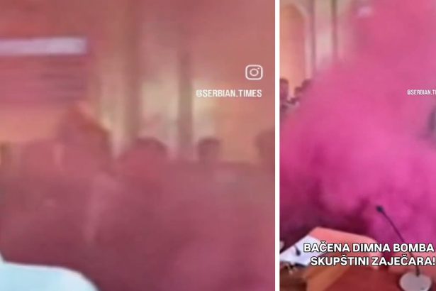 Розова димна завеса го исполни просторот во општинското собрание во Зајечар, додека обезбедувањето избрка советници од опозицијата, а граѓаните протестираа…