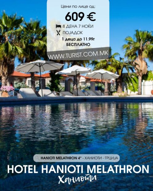 trending_flat Бизнис Туристичка Агенција – Турист Битола: HANIOTI MELATHRON 4* – Ханиоти, Грција Lorita February 4, 2026