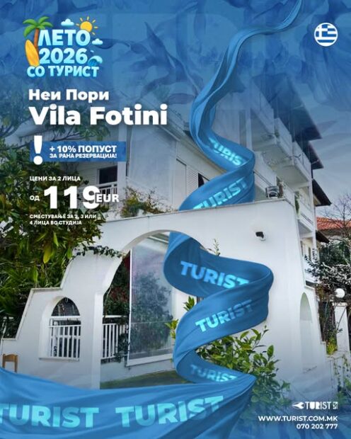 trending_flat Бизнис Туристичка Агенција – Турист Битола: Лето 2026 во Неи Пори, Вила Фотини Lorita January 23, 2026