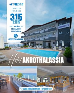 trending_flat Бизнис Туристичка Агенција – Турист Битола: Хотел Акроталасија, Лептокарија – Цени од 315 евра по лице, за 7 ноќевања со појадок и вечера Lorita June 4, 2025