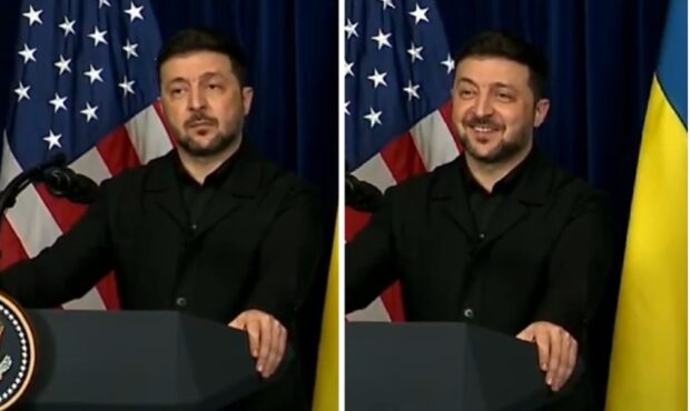 Украинскиот претседател остана со подигнати веѓи и иронична насмевка на зборовите на американскиот лидер Доналд Трамп кој изјави дека рускиот лидер Владимир Путин „сака Украина да успее