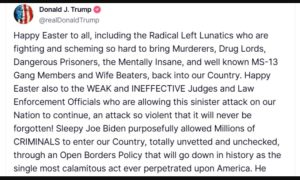 trending_flat Свет Американскиот претседател Доналд Трамп денеска на својата социјална мрежа Truth Social им го честиташе Велигден на сите, вклучувајќи ги, како што наведе, „и радикалните левичарски лудаци“ Lorita April 20, 2025
