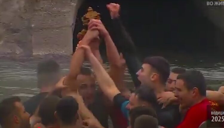 Теодор Јовевски го фати светиот крст што владиката Јосиф го положи во водите на реката Вардар во центарот на Скопје.