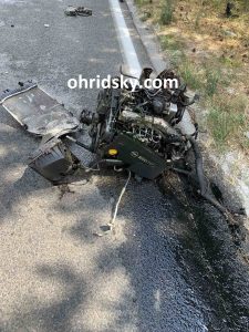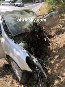 Како што јавија локалните медиумо сообраќајката се случила меѓу две патнички возила, едното со странски, а другото со охридски регистерски таблички. Од ударот едното возило е опожарено.