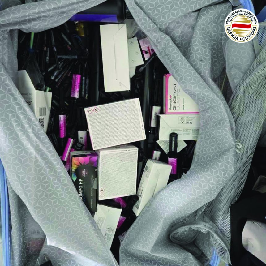 Мобилен тим заплени над илјада парчиња стоматолошки материјали меѓу коишто, прибор за импланти, материјали за изработка на круни и мостови, материјал за пломбирање заби, средства за белење заби, стоматолошка гума и други стоматолошки материјали. Истите се откриени на влез во државата на граничен премин Богородица при контрола на автомобил со кој патувал македонски државјанин. Сторителот, инаку македонски државјанин, без да ја пријави стоката чиј внес е строго регулиран и подлежи на посебни дозволи, сакал да ја криумчари во државата. Против него е поведена соодветна постапка.