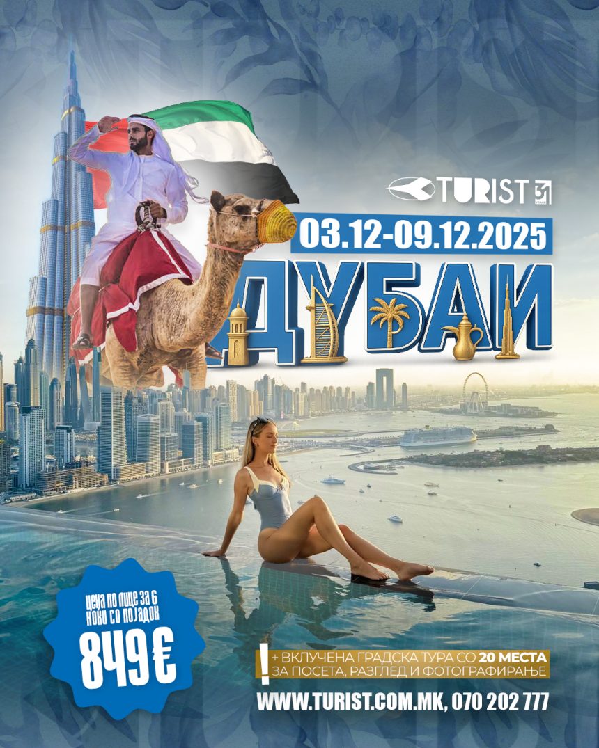Дубаи е град кој живее во две паралели. Едната е пустинската приказна: топол песок, камили и безвременска традиција. Другата е модерната бајка: базени со панорамски погледи кои одземаат здив, кон светлата на Бурџ Калифа и иднината што се создава пред нашите очи. Токму спојот на овие два света го прави Дубаи нешто што мора да се доживее!
