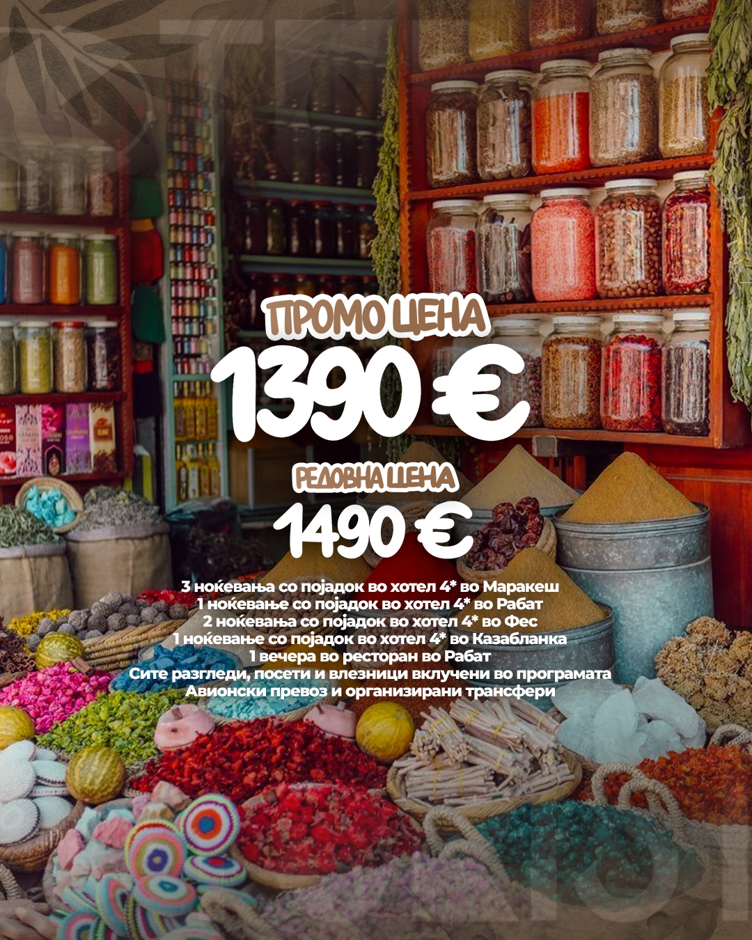 Од мирисите на зачини во Маракеш, преку кралската елеганција на Рабат, до лавиринтите на Фес и модерниот пулс на Казабланка, Мароко е авантура што ги буди сите сетила! 🌙🐫