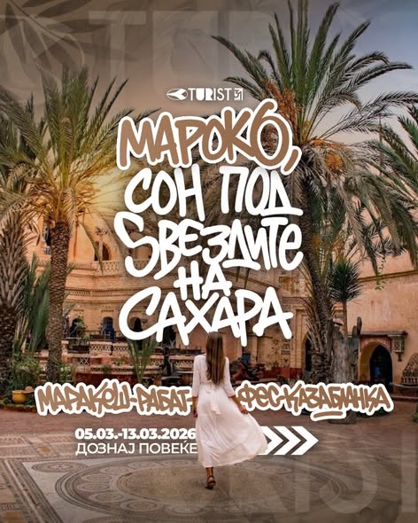 Туристичка Агенција – Турист Битола: Од мирисите на зачини во Маракеш, преку кралската елеганција на Рабат, до лавиринтите на Фес и модерниот пулс на Казабланка, Мароко е авантура што ги буди сите сетила!