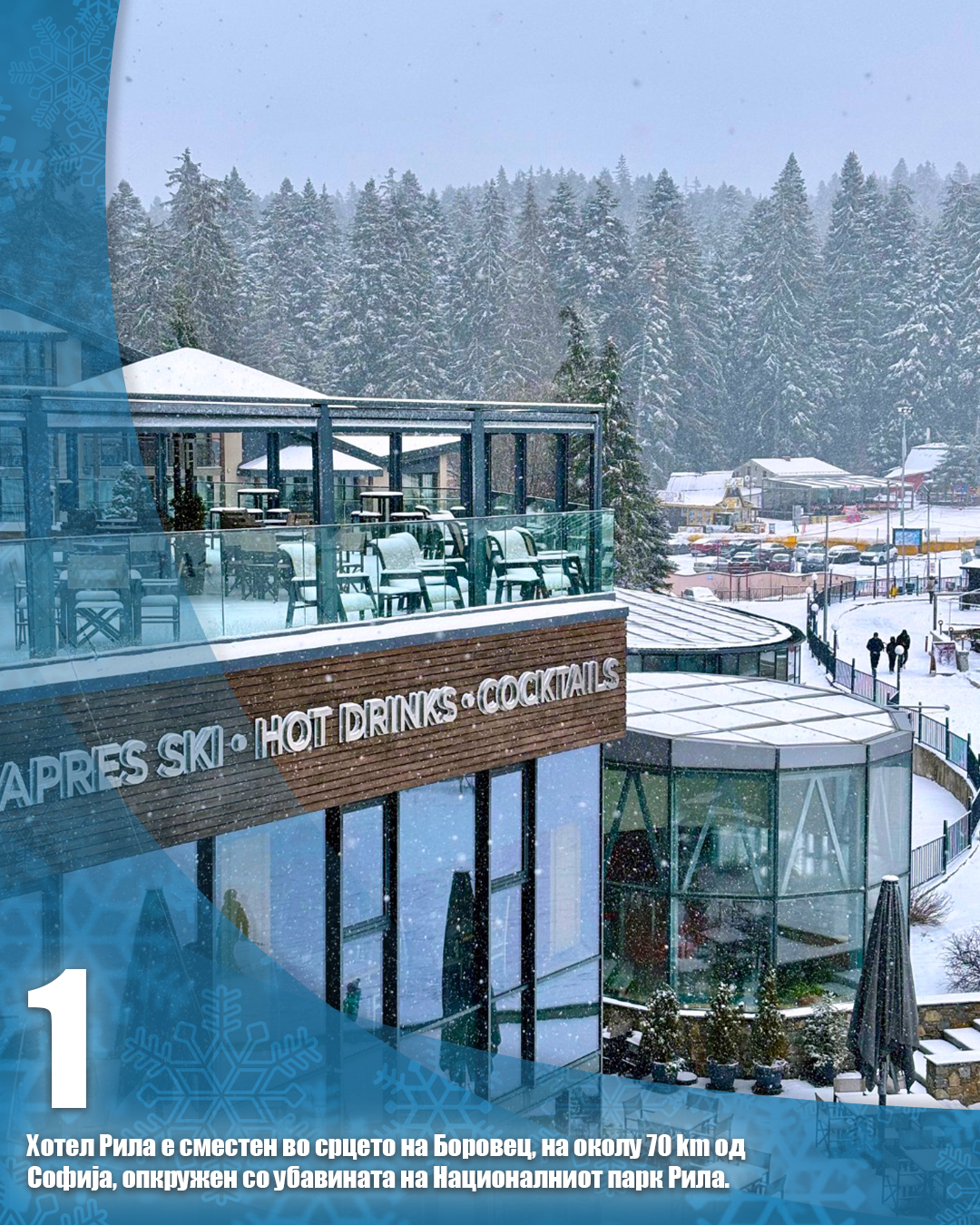 Сместен во срцето на Боровец со вистинска ski-in/ski-out локација, Хотел Рила е најпродаваниот хотел во Боровец и нуди модерни соби, врвно СПА, базен, одлична гастрономија и директен пристап до жичари и гондола. Идеален за семејства, парови и сите што сакаат активен зимски одмор во природа.
