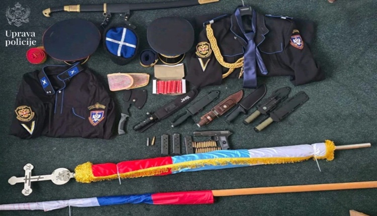 Црногорската полиција го уапси 61-годишниот Д.С. од Даниловград, кој е осомничен дека незаконски учествувал во странска вооружена формација на Руската Федерација. При претрес во неговиот дом биле пронајдени воздушна пушка без документација, воени униформи, панцири, шлемови, опрема на Козачкото братство, комуникациски уреди, СИМ-картички, голем број официјални документи, како и дури 1,5 милион евра на негова сметка, соопшти црногорското МВР.