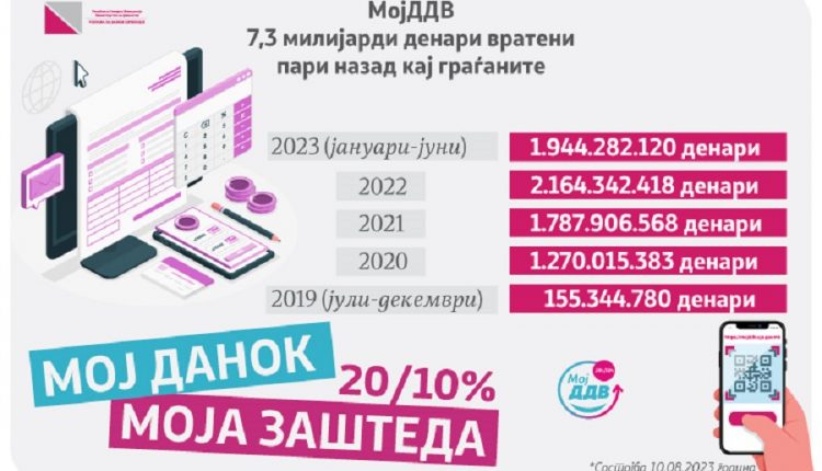 За 5 години, според податоците на УЈП, државата на граѓаните им вратила 7,3 милијарди денари ДДВ.