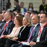Во добро расположение и со чаша добро вино претседателот на Србија Александар Вучиќ и македонскиот премиер Христијан Мицкоски разменија неколку интересни реплики пред присутните на саемот „Винска визија на Отворен Балкан“. Претседателот Вучиќ се пофали со убавите жени во Врање, но Мицкоски спремно возврати дека убави жени има и во Македонија.