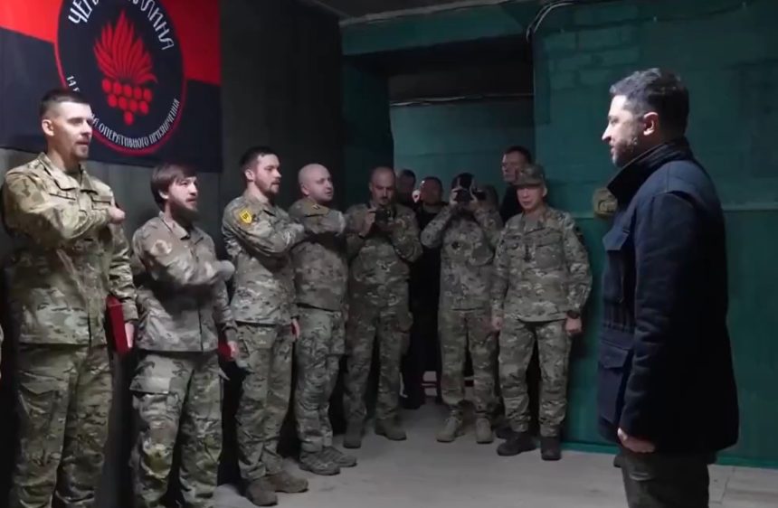 На социјалните мрежи се појави снимка од украинскиот претседател Володимир Зеленски кој им оддава чест на војниците на контроверзната група Азов во бункер.