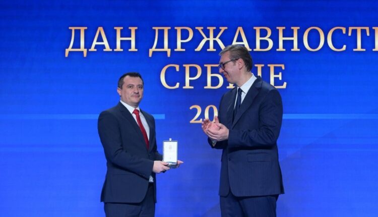Свечената церемонија на доделување државни награди по повод Денот на државноста се одржа во Палата Србија во Белград, каде одликувањето му беше врачено од претседателот на Република Србија, Александар Вучиќ.