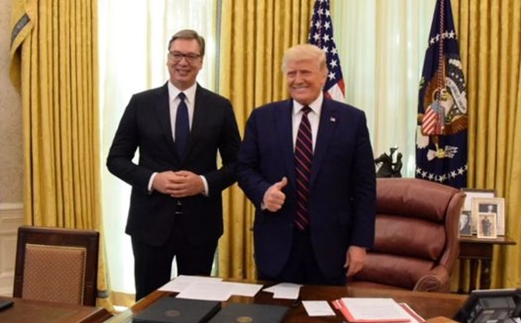 Во својот говор во Мајами, каде што присуствуваше на митинг на Републиканската партија, Вучиќ нагласи дека медиумската кампања против американскиот претседател Доналд Трамп е пресликана со неговиот политички третман во Србија.